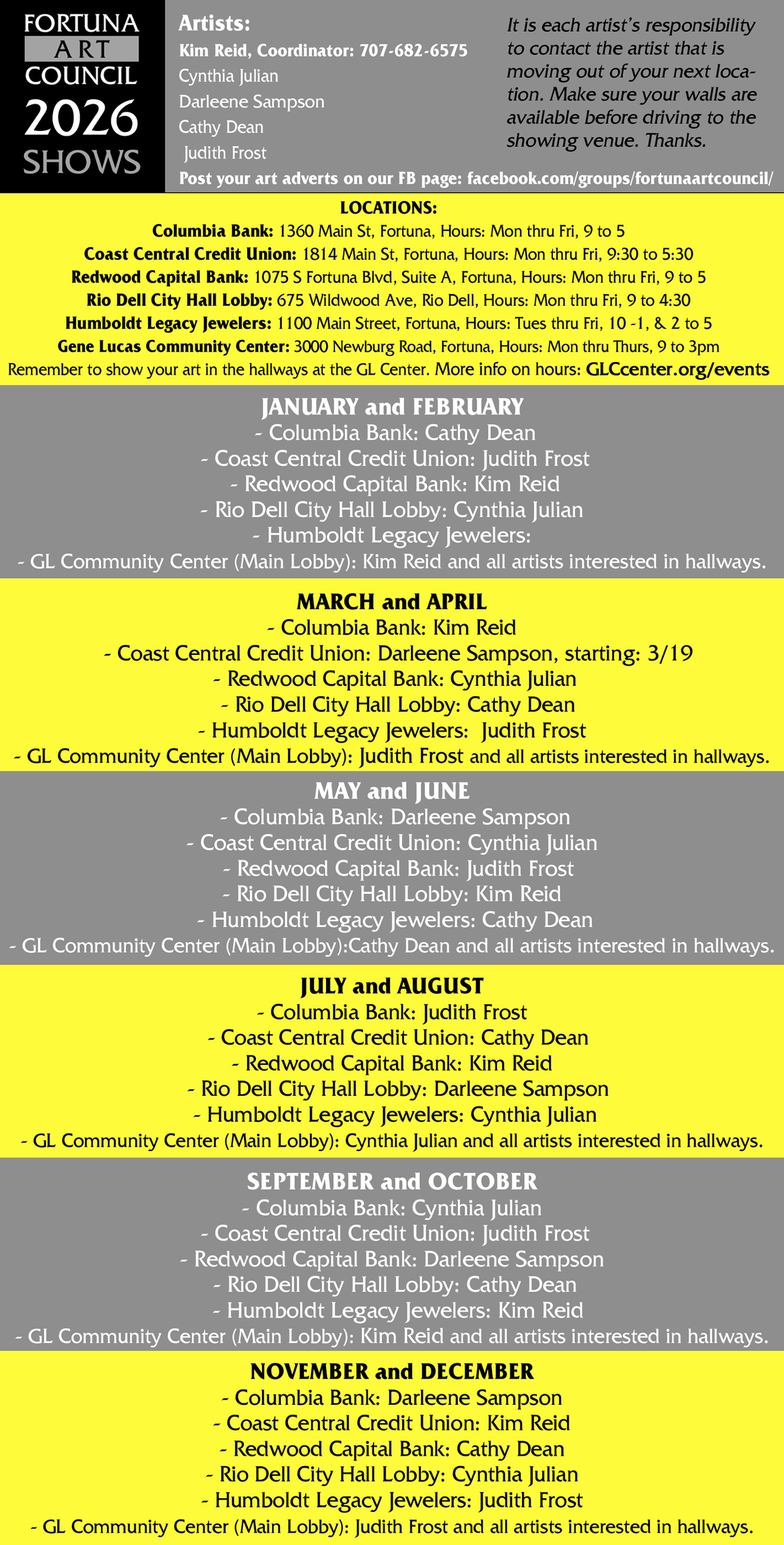 • Fortuna Art Council FaceBook group. Join us.