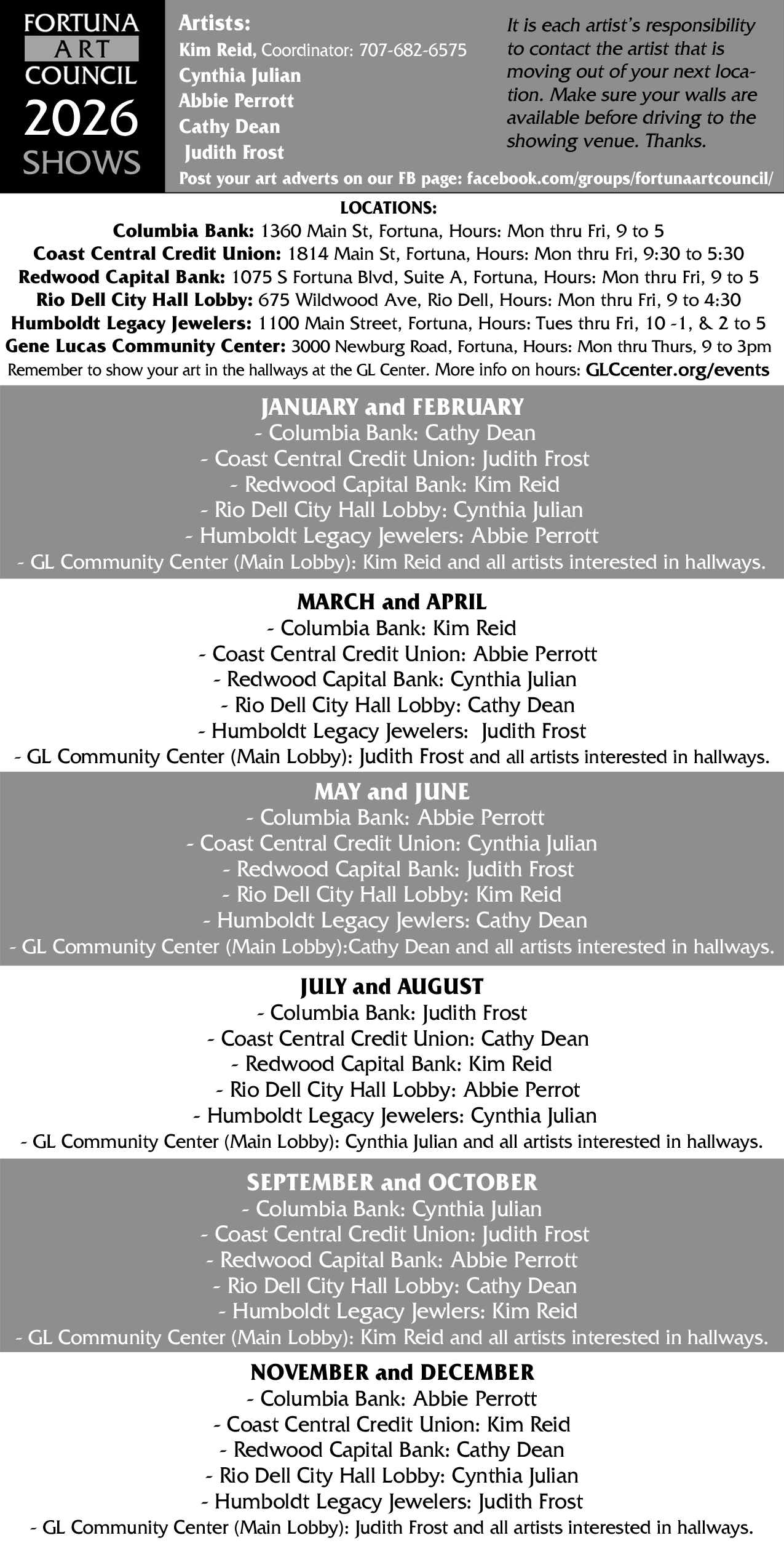 • Fortuna Art Council FaceBook group. Join us.